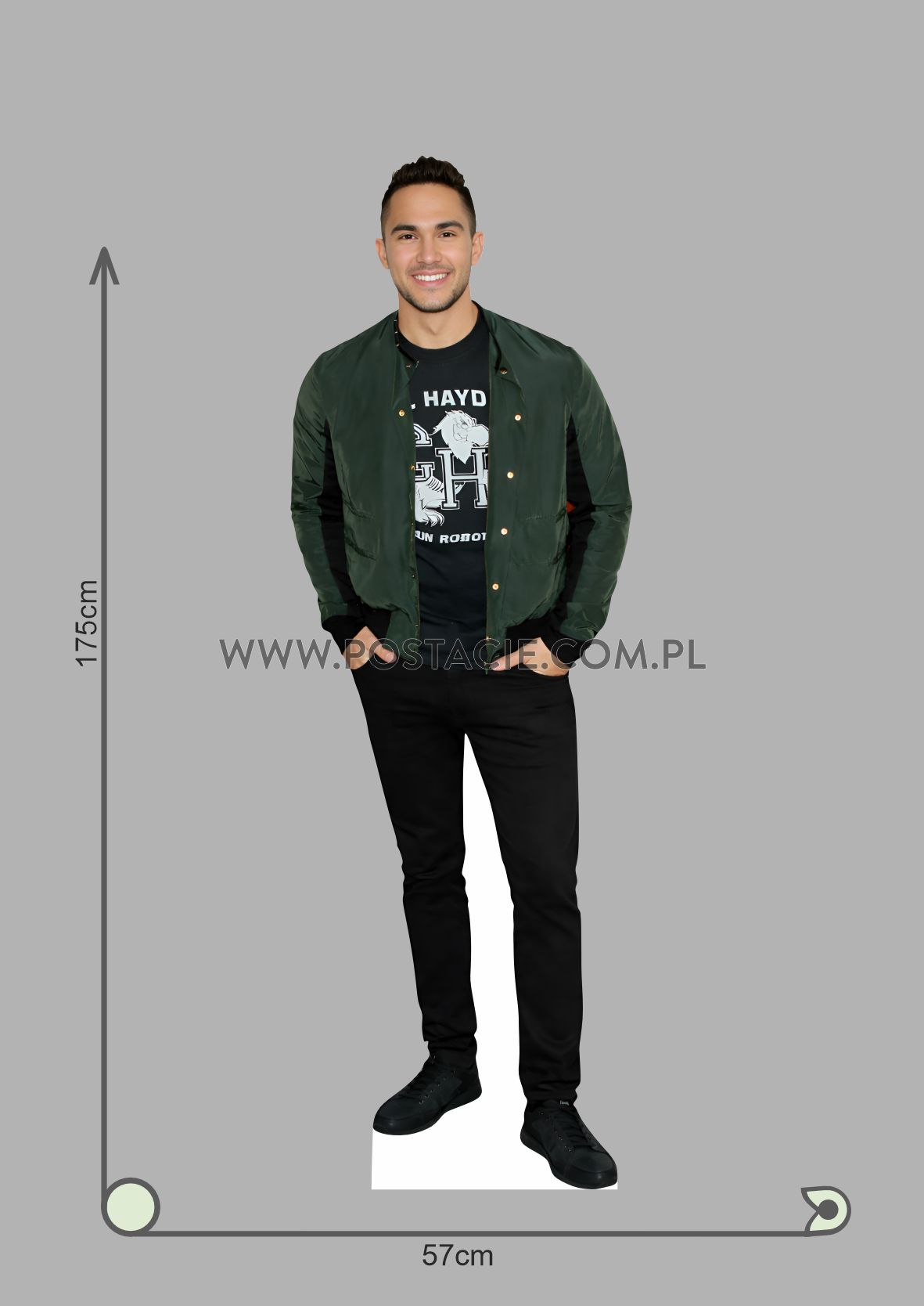 height: 175 cm, width: 57 cm, depth: 50 cm with leg